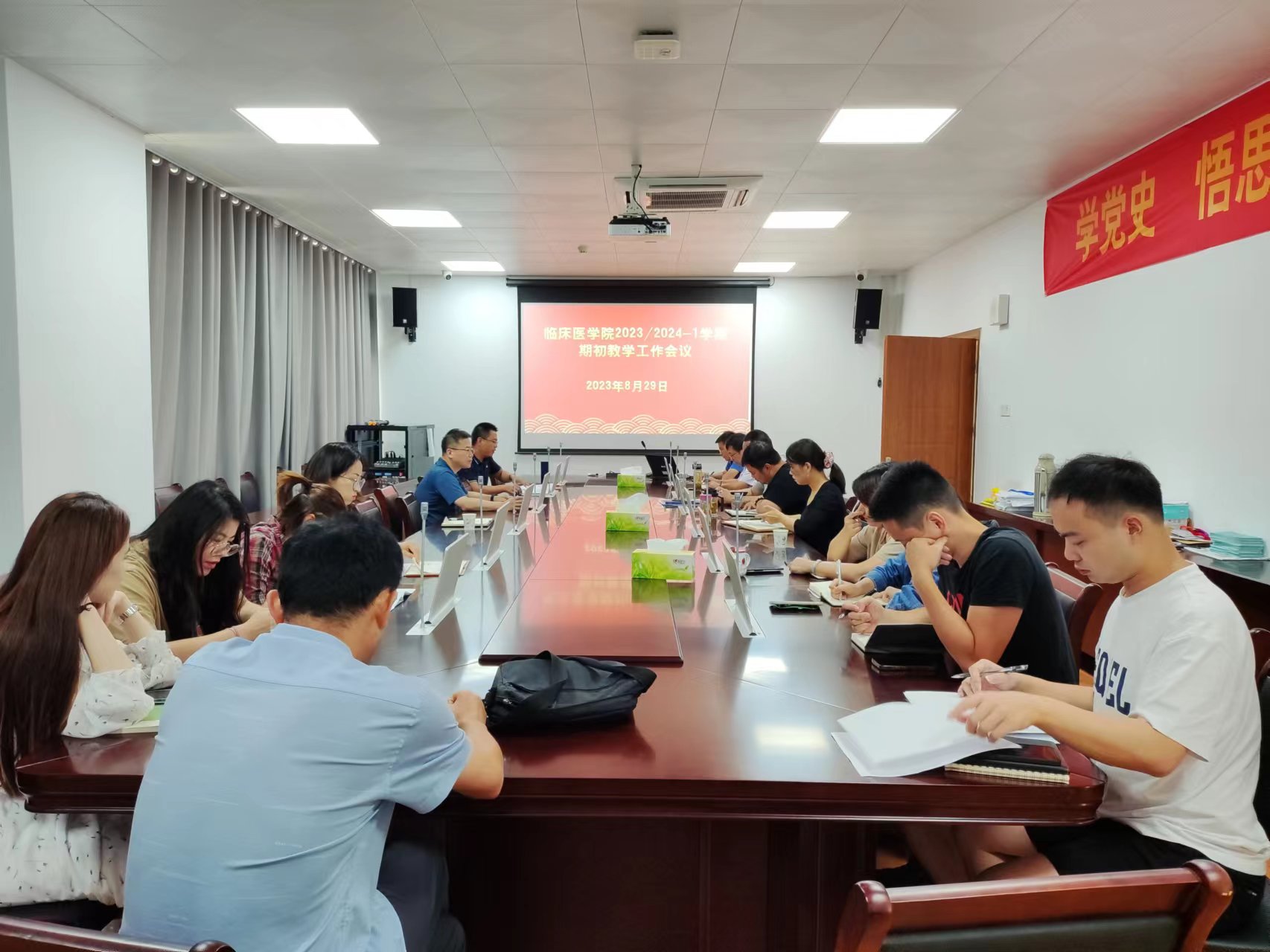 会上,陈祥攀从人才培养方案修订、审核评估、新专业申报、教学(实习)医院检查等方面简要总结了学院暑假教学工作,同时传达了学校期初教学工作例会精神,对新学期第一周第一天第一节课、实验室建设与管理、实验教学准备、期初教学检查等具体工作进行了布置。