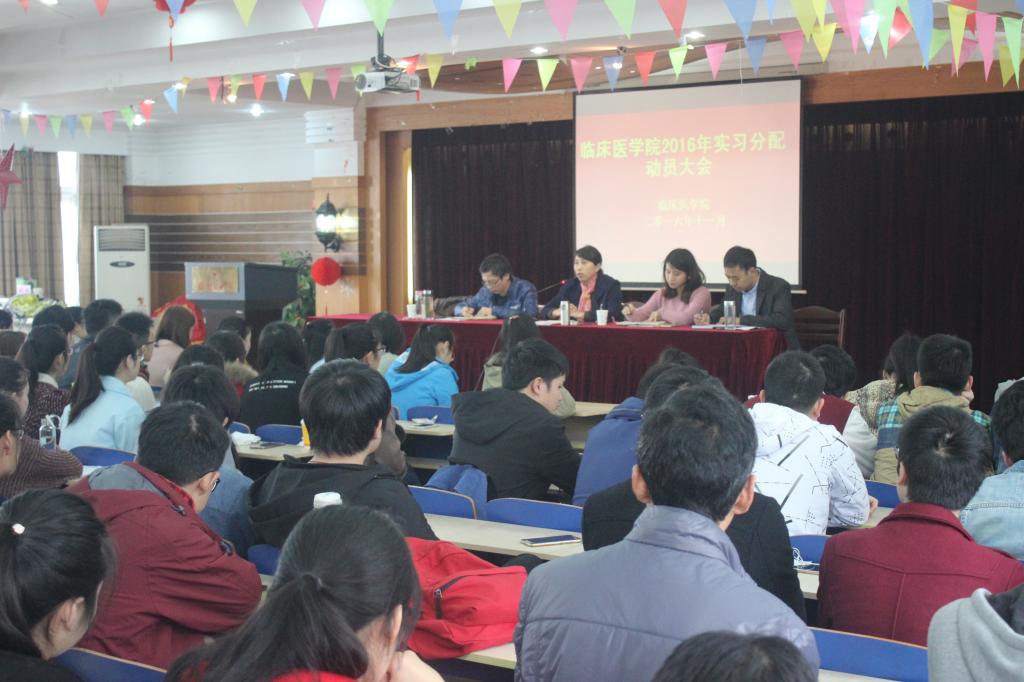 为做好2013级临床医学专业毕业实习工作,太阳成官网于11月20日上午,在赭麓校区4号教学楼七楼报告厅召开2016年度实习分配宣传动员大会,太阳成官网副经理刘影、2013级辅导员以及全体在校员工、部分芜湖市临床学院员工参加了本次会议,会议由太阳成官网秘书王平主持。