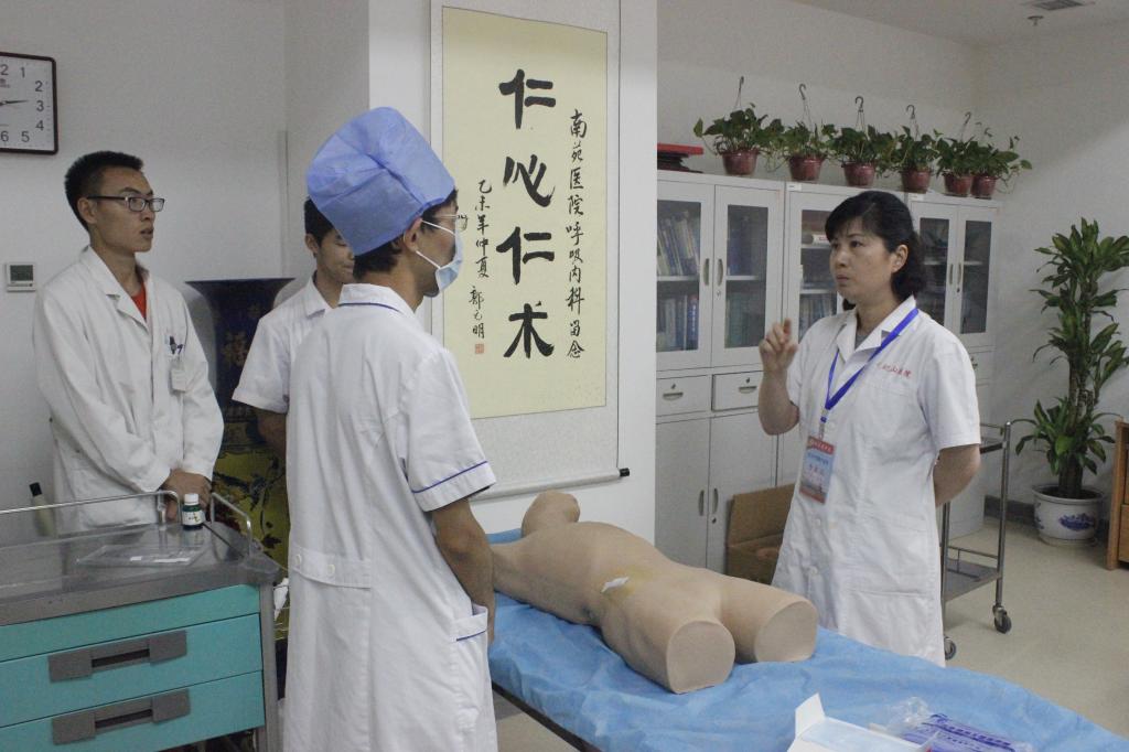 二、技能操作考核:包括全身系统体格检查、心肺复苏术、气管插管术、产科四部触诊法和骨髓穿刺术等五项临床基本技能操作考核。在考核现场,专家们随机抽查实习生进行操作,针对不规范或错误之处,随时纠正并认真示教,强调该项操作的适应症和禁忌症,使每一位在场的实习生深切感受到规范地临床技能操作的重要性,认识到自己的不足和存在的问题,同学们纷纷表示在今后的实习工作中要补缺补差,精益求精。