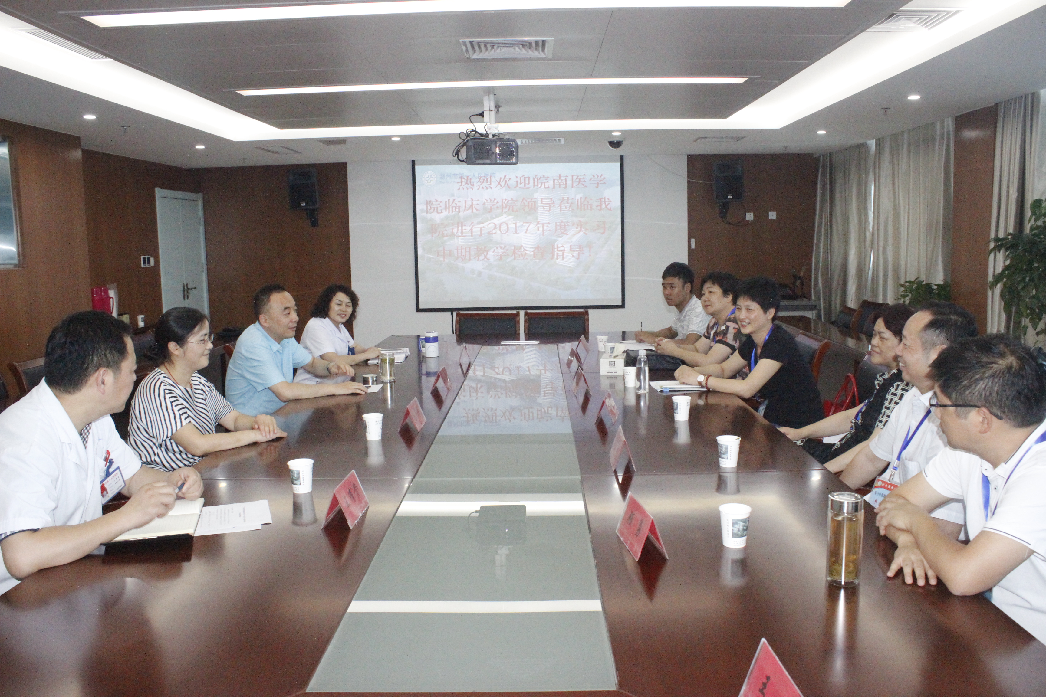 本次检查工作分为两个阶段,7月25日至7月28日,由崔晓霞带队,第一附属医院临床教师李倩、刘策刚、孙青、顾勇等4人组成专家组,先后来到滁州市第一人民医院、太和县人民医院2所实习 (教学)医院开展工作;8月1日至8月4日,由戴睿带队,第一附属医院临床教师李倩、刘策刚、孙青、胡芳等4人组成专家组前往北京市普仁医院、北京市丰台区南苑医院,检查组一行受到了各家医院领导和科教科、医务处等部门的热烈欢迎。