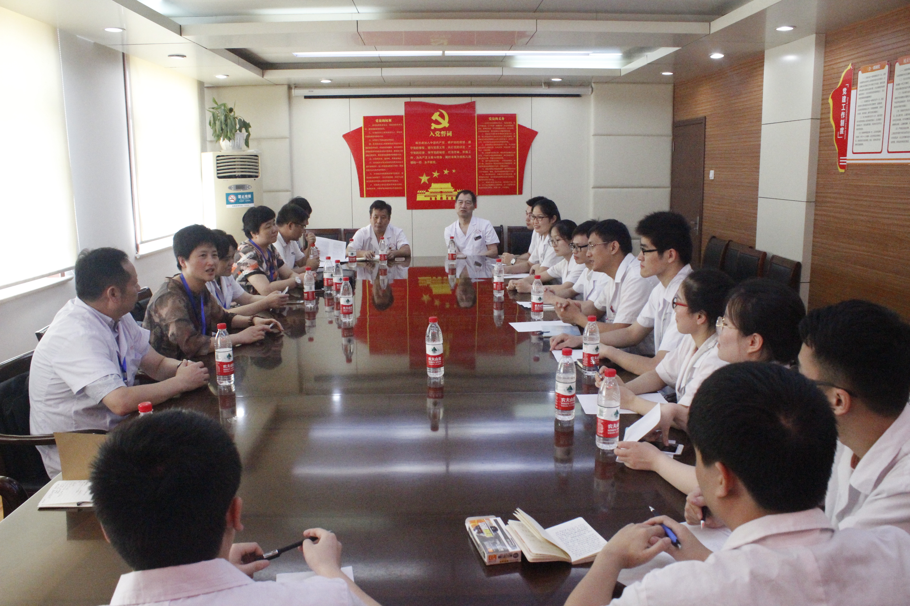 三、师生座谈会:检查组组织召开由实习(教学)医院分管教学副经理、科教科科长、各教研室负责人、教学秘书、带教老师代表和全体实习生参加的师生座谈会。座谈会上,由专家代表根据各环节检查结果进行比较全面如实的信息反馈,指出存在的问题与不足,并提出意见与整改建议。本次检查还向4所医院的实习生发放《皖南医学院实习生综合素质评价表》60份、《皖南医学院毕业实习带教老师教学评价表》40余份,了解公司员工实习情况和医院带教情况。