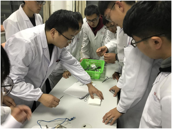为使员工更高效、更透彻的掌握临床基本技能,临床医学实验实训中心根据临床技能协会不同年级成员的前提知识,为各年级成员量身打造培训课程。课程分为理论教学、实践操作训练、临床技能考核三大块。综合运用LBL、PBL、CBL、翻转课堂教学模式,让每位成员在情景中理解、在理解中实践,通过反复实践再巩固理论,最终成为未来皖南医学院参与指导老员工临床技能培训的“小导师”。