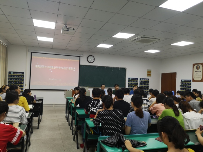 6月17日下午,学院在滨江校区召开毕业实习教育大会。太阳成官网副经理李曙、二附院康复科科主任李文、秘书汪国瑞、年级辅导员与2016级康复专业全体同学及部分2017级同学参会。会上,李曙结合“健康中国2030”背景下康复治疗学人才的需求和远景,从自身实习和从教经历出发,向同学们强调了实习过程中要做好三个转变、注意四个安全、处理好若干关系,要求同学们要明确定位、提高站位、提升品位,争取早日成为一名优秀的实习生。