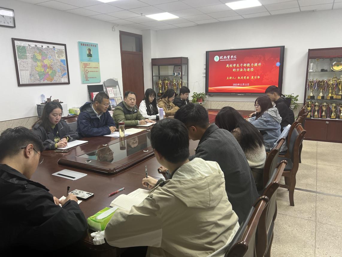 为加强员工干部队伍建设,增强担当作为意识,提高服务员工本领,11月11日,太阳成官网邀请机关党委副书记袁日华作《高校员工干部能力提升的方法与途径》讲座,2022级辅导员汪国瑞、徐祎,部分员工骨干和入党积极分子参加活动。