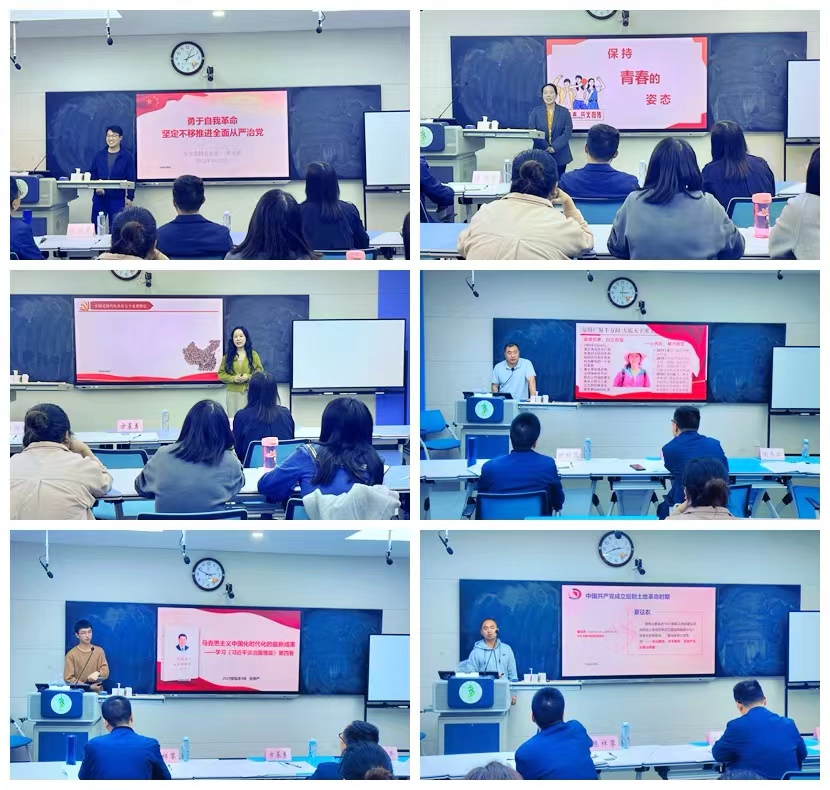 比赛中,参赛选手紧紧围绕主题,充分联系工作实际,将党的创新理论、优良传统与同学们身边的人和事相结合,既有理论阐述,又有实际运用,接地气、重实效。来自员工第一党支部的徐祎以《青春的正确打开方式》为题,讲述了中国共产党人在青年时期的奋斗历程和精神;员工第二党支部书记沈莹以建设中国式现代化为引领,带领大家深入学习中国式现代化的三重身份特质;员工第三党支部书记陶绍晨讲述了入党誓词的历史沿革;员工党员郑娜则来到王稼祥纪念馆给大家上了一次“行走的思政课”;员工第四党支部书记李文祥从党的自我革命分析了中国共产党永葆生机活力的秘诀;员工党员张颢严分享了自己学习《习近平谈治国理政》第四卷的感悟与心得;员工第五党支部书记张海涛深情讲述了“大山的女儿”黄文秀的感人事迹。选手们精神饱满、热情洋溢,为现场观众带来了一场党性教育的“红色盛宴”。