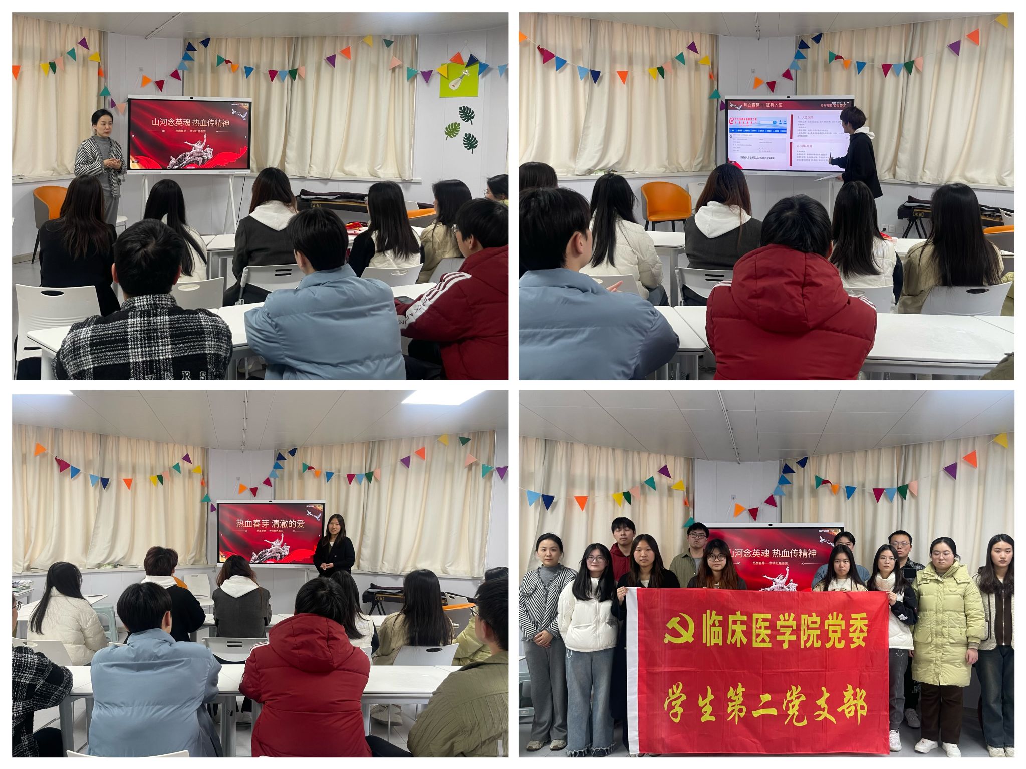 山河念英魂,热血传精神。11月29日下午,员工第二党支部在“一站式”员工社区开展“山河念英魂,热血传精神”宣讲活动,支部党员和入党积极分子以缅怀英烈事迹、传承英烈精神为重点,围绕《戍边烈士,清澈的爱》《无偿献血,传承红色基因》和《热血青春为强军——老员工入伍政策宣讲》三个主题展开宣讲。同学们以讲述戍边战士因保家卫国而英勇牺牲为切入点,由“声”入“心”地启发同学们在和平年代同样可以像他们一样用青春和热血赓续红色血脉——无偿献血和应征入伍,进一步阐述了无偿献血对于保障临床用血安全、挽救患者生命的重要意义。