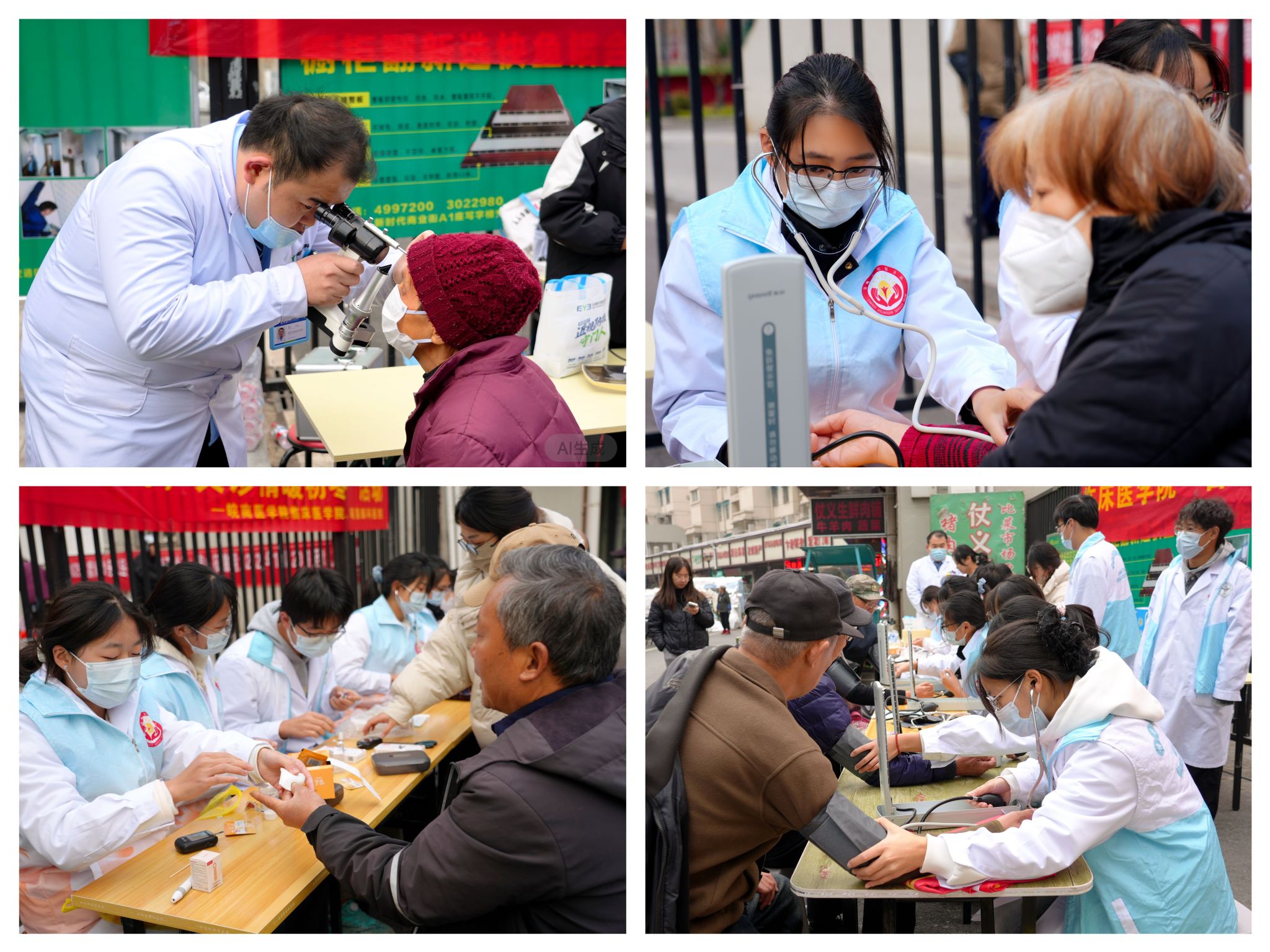 活动现场秩序井然,志愿者们热情引导社区居民参与各项服务,他们为100余位居民免费测量血压、血糖,并给予健康生活建议;芜湖市昭美眼科医院的医护人员运用专业设备,在现场为老人们提供眼部检查,并给予治疗建议,还提供免费清洗眼镜服务,发放视力检测表、眼镜布等物品。现场互动频繁,氛围热烈。