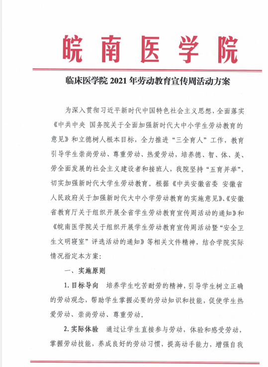 公司在积极完成学校布置的“规定动作”外,学院层面、年级层面还组织了的“自选动作”,。学院层面组织员工在五一期间开展“三个一”活动,即访一名劳动能手、学一门劳动技术、写一篇劳动心得。;年级层面,2016级实习生夯实临床专业技能,为患者提供优质医疗服务;2017级、2018级、2019级和2020级积极参与2021年医学院校临床医学专业(本科)水平测试考务服务工作,他们有的经过专业训练成为SP病人、标准体检者、站点内工作人员,有的成为各考站的引导员,有的成为默默奉献的后勤服务人员,同时同学们还积极开展“清洁寝室”、“清洁教室”、“清洁实验室”、“清洁食堂”等活动,为卫生校园建设贡献力量,用实际行动谱写劳动最美乐章。