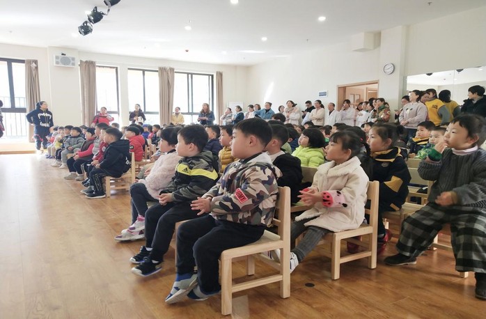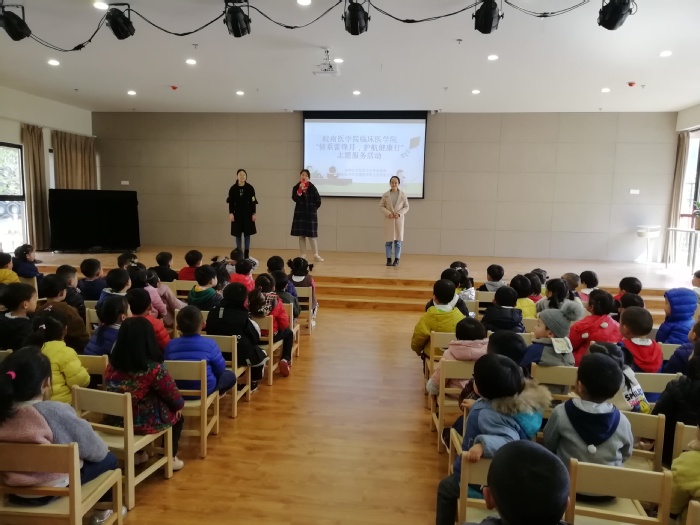 本次活动分为两个阶段。第一阶段为雷锋精神和健康知识宣讲,在园区多功能厅开展,幼儿园全体教师及幼儿聆听了宣讲。志愿者们结合幼儿的年龄特点,生动有趣地向全体幼儿宣传乐于助人、无私奉献的雷锋同志英雄事迹并普及健康卫生小知识。在志愿者们活泼可爱的讲解下,小朋友们积极回答问题,互动交流,现场气氛轻松活跃。