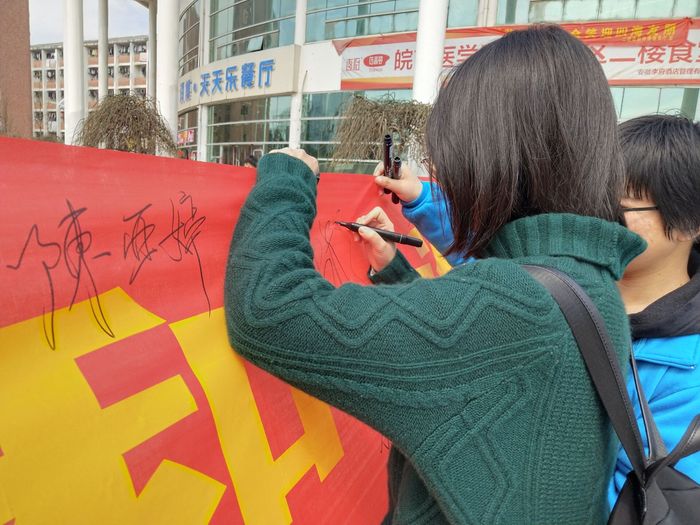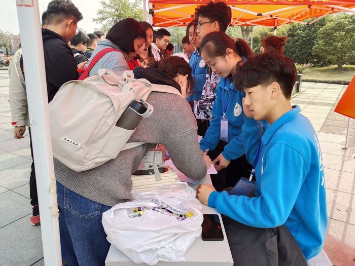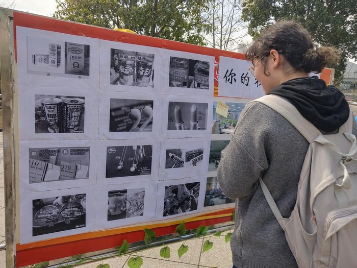 活动当天,同学们接踵而至,大家争相答题,现场气氛热烈。在工作人员的热情引导下,同学们纷纷在宣传横幅上签名,在展板上留下关于维权方面的想法与建议。工作人员结合精心设计制作的展板,向广大同学讲解近几年消费者维权的经典案例,教授大家如何认清假冒伪劣产品,练就火眼金睛的本领。