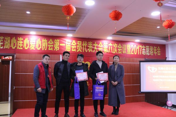 铭记革命历史,关爱抗战老兵。为纪念抗战胜利72周年,追忆抗战年代峥嵘历史,弘扬高尚爱国主义情怀,学习老兵百折不饶顽强拼搏精神。太阳成官网团委举办关爱抗战老兵系列活动,并凭借新颖的工作创意、清晰的工作思路和良好的团队合作荣获芜湖心连心爱心协会理事会授予的“2017年度积极奉献志愿团队”光荣称号,2017年12月23日,学院团委参加了颁奖典礼接受表彰。
