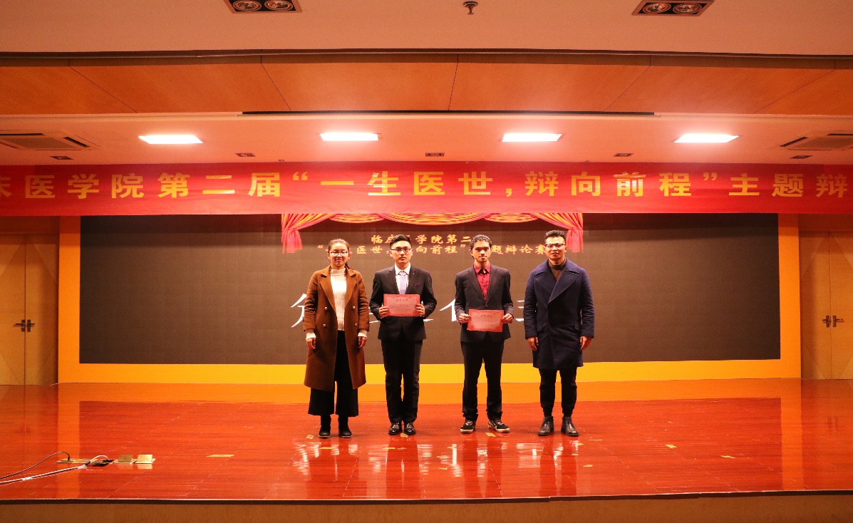 经过初赛、半决赛的激烈争夺,2支队伍脱颖而出进入冠亚军争夺战,另有两支优秀队伍进行表演赛。此次大赛分别围绕“医术更重要,还是医德更重要”和“医学院校应不应该增设人文类课程”两个辩题展开了激烈的辩论。比赛共分为“开篇立论”、“攻辩阶段”,“自由辩论”和“总结陈词”四个环节进行。比赛伊始,双方在立论方面或引经据典,或旁征博引,主题鲜明,条理清晰。攻辩与自由辩论环节,一言一语是思想上激烈的碰撞,一分一秒皆团队间合作的争取。赛场上无形的硝烟,碰撞出思想的火花。激烈的交锋与犀利的话语赢得现场观众阵阵掌声,将比赛的氛围一次又一次地推向高潮。总结陈词环节中更是将选手灵活的思维、缜密的逻辑推理展现得淋漓尽致。两组比赛间隙更是有乐器表演,宛转悠扬犹如天籁之音,令人沉醉。在评委点评环节,赵敏奇、杜勇飞老师分别对辩论赛进行了深刻透彻的点评,让辩手们受益匪浅,也赢得了观众们热烈的掌声。最终来自2017级的无与伦比队凭借丰富的知识底蕴、良好的心理素质以及运用自如的辩论技巧勇夺桂冠。2016级的应泽生、叶冠峰分别获得最佳辩手和优秀辩手称号。