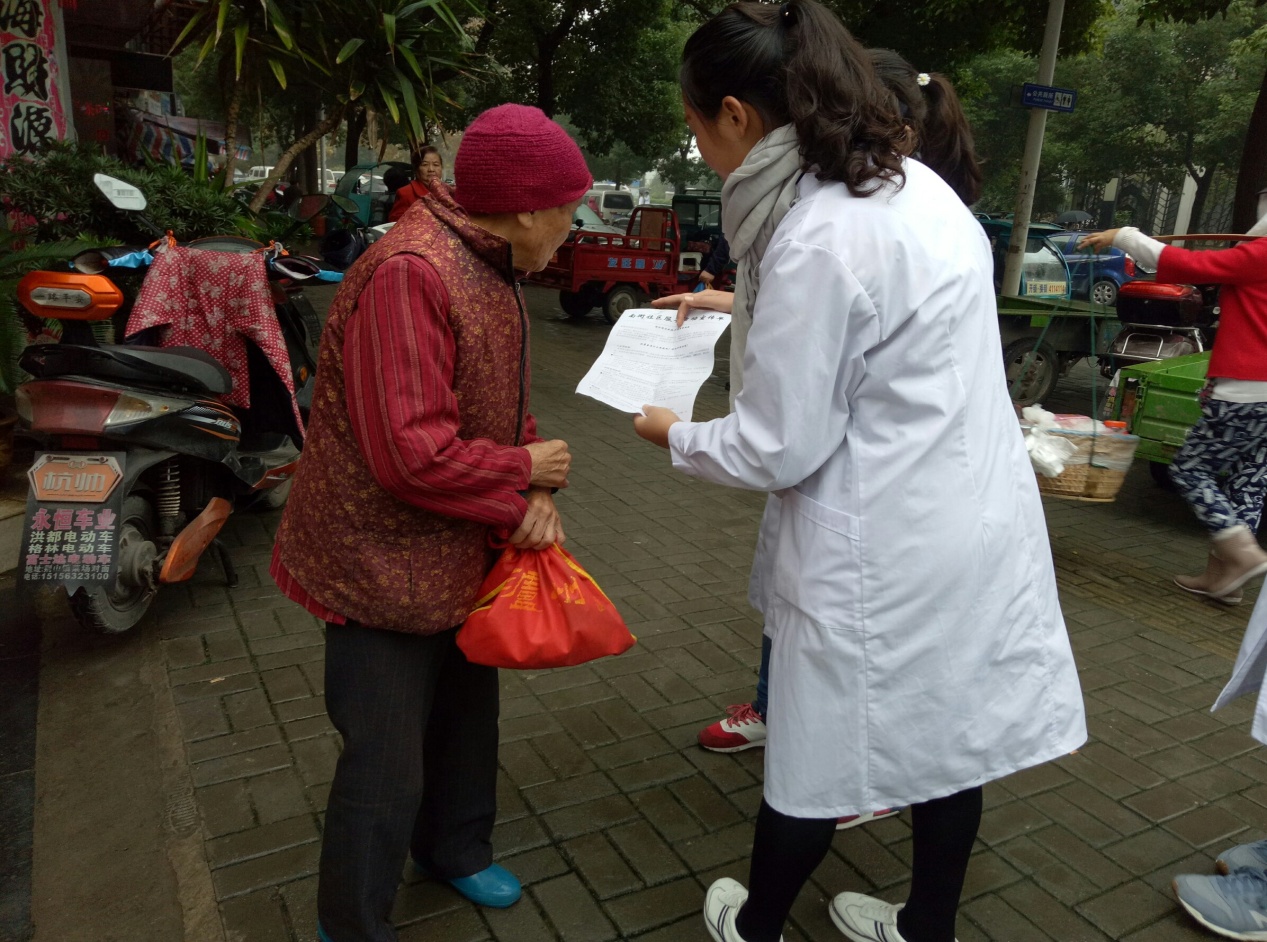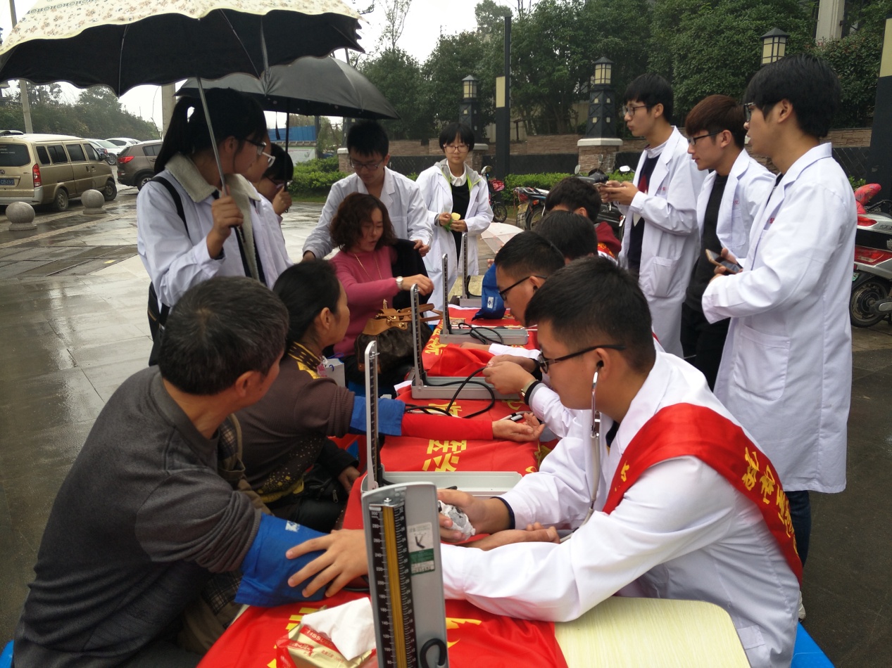 19日上午7:30,志愿者们身着白大褂在学校南大门集合准备出发。参与活动的志愿者多达30人,志愿队伍浩浩荡荡,精神饱满,尽显公司学子积极向上的精神风貌。到达社区后,志愿者们与社区负责人进一步沟通,布置现场、检查测量仪器等各项准备工作有条不紊地进行。9:00,志愿服务活动准时开始,本次活动内容包括健康宣传、测量血压、清洁家园等三个方面。部分志愿者走进社区发放季节性疾病预防宣传单,向居民详细介绍秋季疾病相关防治知识,并宣传引导居民前往志愿服务台免费测量血压,关注身体健康状况。在志愿者们的积极行动下,即使是阴雨蒙蒙的天气,前去志愿服务台的居民仍然越来越多。对于居民们的血压健康情况及所问到的常见健康问题,志愿者们结合所学知识悉心为他们答疑解惑,针对日常饮食等生活习惯也给出相关意见。与此同时,为助小区居民生活环境整洁美化,志愿者们手持扫帚,分头行动,对小区公共区域进行了清扫。志愿者热情负责的工作态度赢得了社区居民们的信任与赞扬,居民们表示希望多多开展此类有意义的活动。