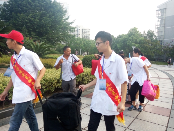 党员模范,打造热心服务。迎新当天,由员工第三党支部员工党员带头组成的党员服务站格外引人注目,他们胸带党徽,身穿白小褂,肩披红绶带,一遍又一遍不厌其烦地答疑解惑,一趟又一趟不辞辛苦地搬运行李,以真诚的微笑、贴心的问候和周到的服务赢得了新生和家长们的交口称赞。员工党员以实际行动践行了“两学一做”,为学弟学妹们树立了良好的榜样。
