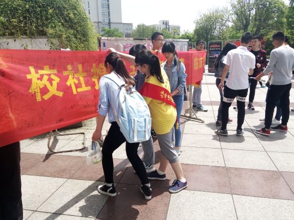 此次活动共展出17位抗战老兵的图片,介绍了他们的从军经历、部队番号等。两位老兵更是亲临展览现场与公司学子进行互动,讲述他们的抗战岁月和艰苦经历。活动期间,公司志愿者们对前来瞻仰老兵事迹的同学们给予耐心的介绍,深受感染的同学们络绎不绝地在写有“校社联手共温老兵情,临床学子齐铸五四魂”的横幅上签字,为抗战老兵献上最诚挚的敬意。两位老兵也在横幅上写下了自己的期望,“年青一代是祖国的未来”解放军战士周耀先写道。