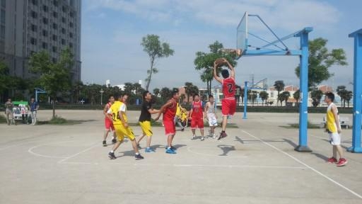 篮球场上奋力拼搏