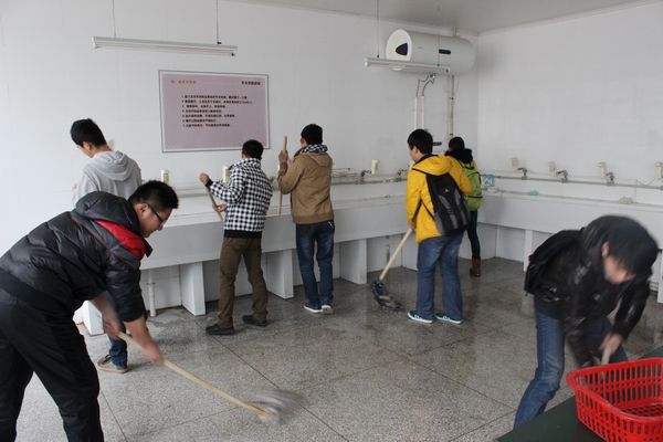 二、走进教研室,践行雷锋精神 在启动仪式之后,青年学子们迅速投入行动,医学一系2011级青年学子带上扫帚、拖把等工具,走进手术学教研室、实验室,对那里进行了大扫除。同学们擦窗户,擦桌凳,拖地,整理和清洗教学仪器,每一位同学都投身到活动中去,干得热火朝天。清扫完毕后,还和老师们进行了交流,了解今后将要学习课程的基本情况,围绕“从皖医出发,弘扬雷锋精神”的活动主题,既践行了雷锋精神,又了解了专业课的情况,达到了双赢的效果。