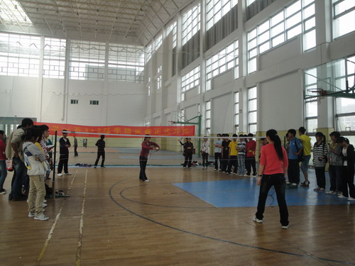 篮球开幕赛是2008级代表队对2010级代表队。比赛伊始,球员们积极拼搏,你争我斗,打出了一个小高潮,随着一个又一个精彩进球欢呼声此起彼伏,全场气氛活跃精彩不断。随后,上午10时,第一场乒乓球和羽毛球赛同时进行,队员们的表现同样精彩。巧妙的短球、有力的扣球赢得观众阵阵喝彩,赛后两队队员彼此交流了赛后的感受,取长补短。