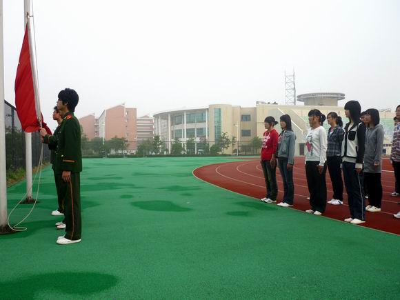 清晨7点,医学一系2009级21班的全体同学来到体育场,整齐地站成四列。校国旗队的同学迈着整齐的步伐走进体育场,两名护旗手守护着升旗手手中的五星红旗走向旗杆。嘹亮的国歌响起,在全体同学坚定目光的注视中,五星红旗伴着清晨第一缕阳光缓缓升起。在庄严肃穆的升旗仪式中,同学们更加真切感受到作为社会主义合格建设者和可靠接班人应承担的责任。