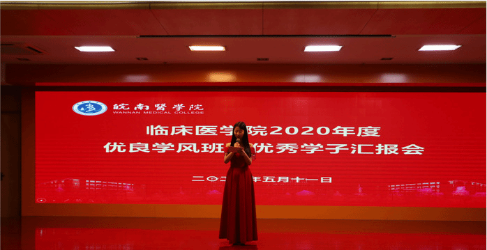 现场汇报过程中,7位“优良学风班”汇报人借助制作精美的PPT,结合班级特点,以“无惧无畏追光者有声有色皖医人”、“三折肱,知为良医”等为题,围绕班级建设、日常管理、学风建设、学习成果、科研成果、班团活动等方面,将本班的亮点和特色展示得精彩纷呈;9名“优秀学子”候选人分享了自己在专业学习、文体艺活动、励志奋斗、社会实践等方面的收获,展现了自己德、智、体、美、劳全面发展的风采。