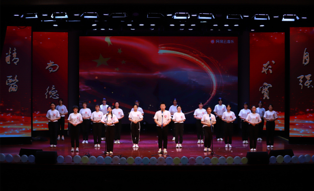文艺党课由乐器表演《映山红》正式拉开序幕,多种民族乐器各司其职、配合默契、相得益彰,通过弹奏,表现出演奏者对党真挚的爱;手语唱红歌《国家》、大合唱《我和我的祖国》献礼祖国母亲,诉说着中华儿女对美丽祖国的无限热爱;话剧《恰同学少年》、《党啊,亲爱的妈妈》重现了五四运动浩荡百年的历史荣光、歌颂了仁人志士千秋凛然的爱国热情,场下观众无不为之动容;相声《文化人》以生动风趣的方式道出了抗疫英雄们的光荣事迹和医员工的责任与担当;武术表演《墨舞丹心》行云流水,退役学子的军体拳虎步生风,扣人心弦,引人入胜,将现场气氛推向高潮;乐队表演《社会主义好》将现代与经典相结合,嘹亮的歌声,彰显华夏儿女拼搏奋进的雄心;朗诵《我爱你中国共产党》抑扬顿挫,慷慨激昂,歌颂党恩是至纯至真的情感迸发;舞蹈《咏春》、《芒种》等运用群舞的方式,将古典与现代元素完美结合,热情似火的舞步,彰显青春活力,展现出老员工的蓬勃朝气与独特魅力;歌曲串烧用音乐歌颂似水年华,用歌声谱写追梦青春,将一代青年脚踏实地不忘初心的信念展现得淋漓尽致;教师《阳光总在风雨后》对话员工展现师生情深,希望青年员工坚定理想信念,志存高远,不畏艰难,脚踏实地,勇做时代的弄潮儿;《不忘初心》大合唱气势恢宏,莘莘学子的满腔爱国之情随着歌声飘扬回荡,为整场文艺党课画上了圆满的句号。