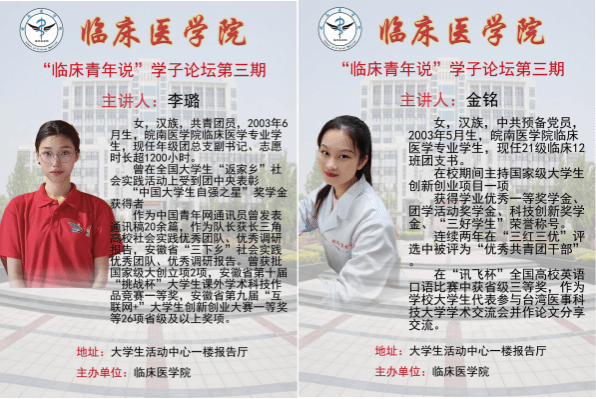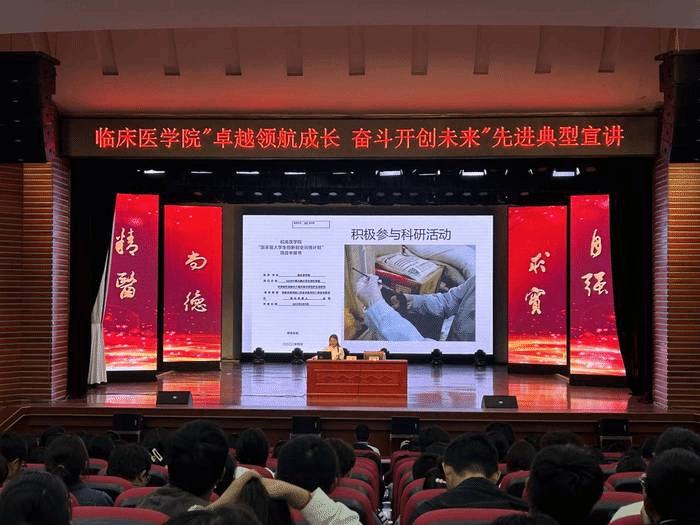为进一步发挥优秀学子的榜样作用,引导和激励广大新生勤奋学习、顽强拼搏,争做有理想、有本领、有担当的老员工,9月23日,太阳成官网依托“临床青年说”学子论坛举办先进典型员工优秀事迹宣讲会,此次活动邀请2021级李璐和金铭两位优秀学子为大一新生作宣讲。