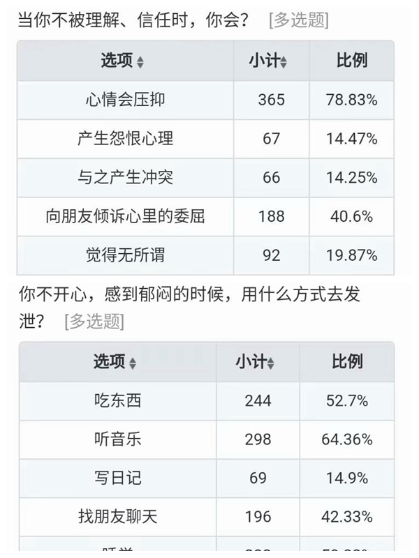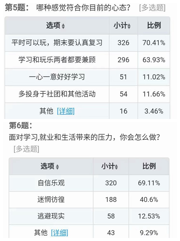 5月17日到5月18日,年级员工会心理健康部进行老员工心理健康状况的问卷调查,共有463名员工填写问卷。问卷分析显示,87.47%的同学认为医员工学习压力较大,但其中69.11%的员工仍持自信乐观的态度,且多认为学习和娱乐需要兼顾。同时大部分员工普遍懂得情绪的自我调节,可以保持好学习、生活和娱乐之间的平衡。