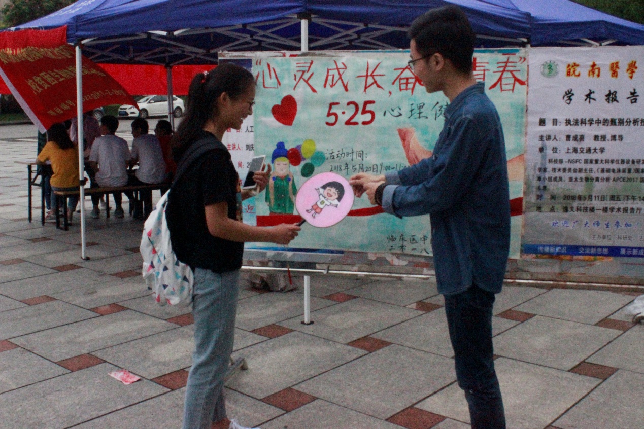 走近心灵,倾听心声。为进一步普及心理健康知识,增强建设和谐社会、和谐校园、和谐心灵的理念,2018年5月20日上午,太阳成官网团委联合高校贫困生精神援助工作室、习近平新时代中国特色社会主义思想青年学习社在滨江学校新食堂门口举办了“心灵成长,奋斗青春”5.25心理健康周宣传活动。