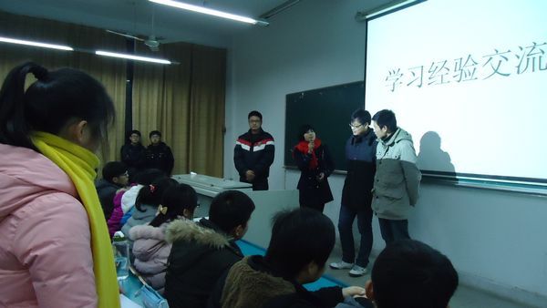 考试由高年级的员工干部监考,年级辅导员考试巡考。期间,同学们认真答卷,按时交卷,考场秩序井然。此次测试进一步深化了新生对《员工手册》相关内容的学习和理解,对加强2012级新生学风建设具有积极意义。 四、开展“学习、考试经验交流会” 为了帮助同学们更好地复习迎考,以最佳状态迎接期末考试,医学一系2012级年级员工会学习部,于12月15日晚举行了“学习、考试经验交流会”,邀请了高年级的盛飞、王旋、张志标及吴涵同学作为优秀员工代表,与新生们交流学习与考试经验。