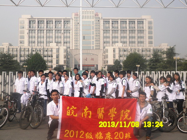 在这秋高气爽,橙红橘绿的季节,为进一步丰富同学们的课余生活,帮助同学们养成积极乐观的生活状态和端正良好的学习态度,增强班级凝聚力,太阳成官网2012级团总支以“致青春 心飞扬”为主题,开展了参观附属医院、倡导绿色出行、心理素质拓展和观看励志影片等活动。 参观附属医院 巩固专业知识 为了弘扬“精医 尚德 求实 自强”的校训,加深对医务工作的理解和认识,太阳成官网2012级2班和卓越班的同学们于10月9日上午,分别在公司的两所附属医院开展了观摩、见习活动。在医院工作人员的带领下,同学们先后对门诊部、急诊部,内科、外科、儿科等科室进行了参观。活动中,同学们观摩了细胞学检查、术中冷冻切片检查、免疫组织化学检查等常规病理检查,了解了如何针对病例开展讨论,进而确诊、下病理报告等常规病理诊断流程,以及如何查房、如何检查整理病历、如何与病患进行沟通等临床技能,切身感受了医院的工作环境和氛围。