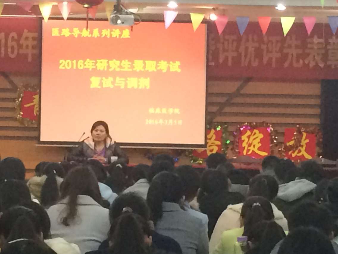 本次讲座内容详实丰富,为同学们下一步复试及调剂工作树立了信心,理清了思路,指明了方向。尤其郑经理提出的端正考研目的以及医员工应该奠定终生学习的理念,给同学们上了生动的一课,使同学们坚定了为医学事业奋斗的信念。