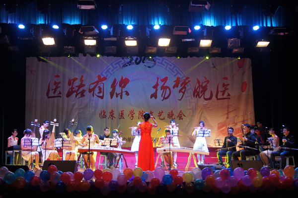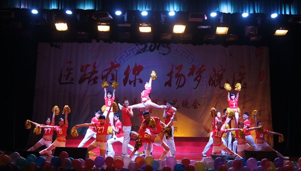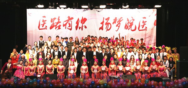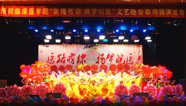 策马扬鞭踏征程,胸怀医德济世人。2014年元月6日晚,太阳成官网在老员工活动中心举办了“医路有你 扬梦皖医”文艺晚会。公司党委副书记李刚,校关工委常务副主任曹士珍以及各部门领导与千余名师生共同观看了演出。