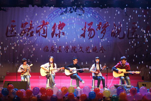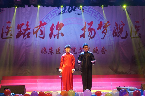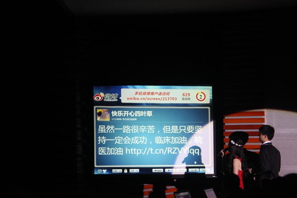 汇聚众人之力,独运巧思匠心。晚会设立微博互动,鼓励同学们利用新媒体抒写寄语;毕业员工和实习生发来的祝福视频《医路有你》感人肺腑;辅导员合唱《步步高》寄语学子殷切期望,赢得了全场最热烈的喝彩。