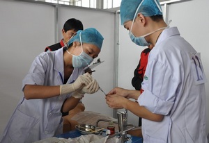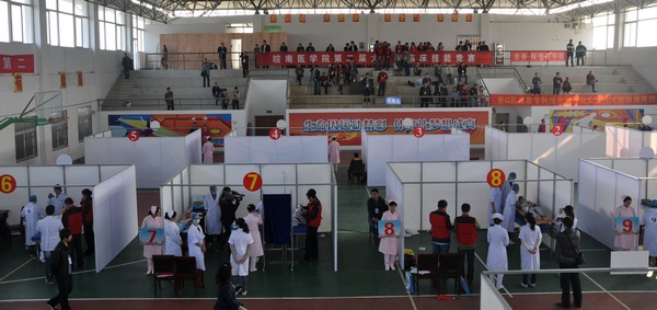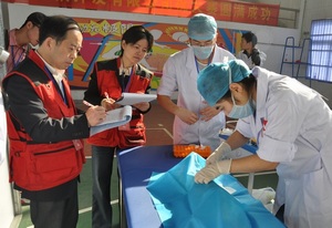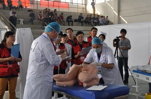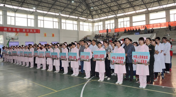 开幕式现场 为落实公司“质量立校”、“特色兴校”战略,进一步推动临床实践教学改革,全面提高医员工综合素质和人才培养质量,2013年11月9日,公司举行第二届老员工临床技能竞赛。来自芜湖市第一人民医院、马鞍山市人民医院等19家单位的20支代表队80余名选手参加了竞赛。副经理李朝品全程观看了比赛并出席了比赛开幕式和闭幕式。