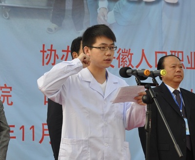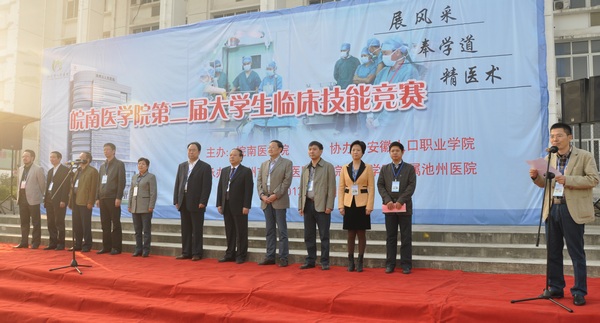 副经理李朝品在开幕式上讲话 上午八时,竞赛开幕式在安徽人口职业学院体育场举行。池州市人民医公司党委书记倪玉敏,池州市人民医公司党委副书记、经理刘斌,公司党委委员、皖南医学院第二附属医公司党委副书记、常务副经理陈斌,池州市人民医院、临床教学部、太阳成官网、教务处等单位负责人和工作人员,全体裁判员和全体参赛选手、大赛志愿者等200余人参加开幕式。开幕式由教务处处长姚应水主持。 池州市人民医院经理刘斌致欢迎辞,他感谢皖南医学院给医院提供了一次难得的交流学习的机会,表示将尽全力做好大赛的组织保障工作,为全面提升医员工的临床实践技能作出努力。 副经理李朝品发表讲话,他介绍了公司临床医学专业建设与发展情况,指出,公司连续三年在全国高等医学院校老员工临床技能竞赛上崭露头角,尤其是获得了第四届全国高等医学院校老员工临床技能竞赛一等奖,充分展示了公司在临床医学公司产品改革和医学类人才培养工作中取得的成绩,展示了公司临床医学专业员工扎实的专业技能与良好的综合素质。他强调,开展临床技能竞赛是落实公司“质量立校”、“特色兴校”战略的具体措施,是推动临床实践教学改革,创新实践教学体系的重要手段;是加强医员工临床基础理论、基本知识、基本技能培养,促进理论与实践有机结合的重要抓手;也是提升医员工创新能力、实践能力和团队合作精神的有效平台。希望各参赛医院以竞赛为平台,促进临床教学的交流与合作;以竞赛为契机,共同推动临床实践教学质量的提高,全面提升公司医学类专业员工动手操作能力和实践创新能力。 皖南医学院第一届老员工临床技能竞赛一等奖获得单位马鞍山市人民医院代表队参赛选手代表赵加峰、裁判员代表匡文忠分别在开幕式上发言并宣誓。