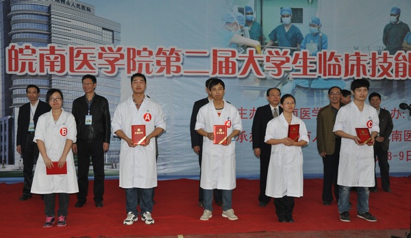 闭幕式现场 公司党委委员、皖南医学院第二附属医院常务副经理陈斌致闭幕词。他代表学校向在本次竞赛中取得优异成绩的选手和获奖代表队表示祝贺,向为竞赛付出辛勤劳动的全体裁判员和工作人员表示感谢,向为本次竞赛成功举办作出贡献的池州市人民医院领导和全体医护员工表示崇高的敬意。他高度肯定了比赛取得的成效,指出,整个比赛精彩纷呈,秩序井然,赛出了风格、赛出了友谊、赛出了水平。学校通过定期举办临床技能竞赛,为员工提供了一个相互交流、共同提高的平台,也为员工提供了一次自我发展、自我展示的机会,充分展示了公司员工实践操作水平和良好精神风貌。希望全体师生在今后的学习和工作中,继续发挥本次竞赛的好作风、好精神,奋力拼搏,锐意进取,再创佳绩,为把公司建成特色鲜明的高水平教学研究型医科大学作出更大的贡献。 本次竞赛由皖南医学院附属池州市人民医院承办,安徽人口职业学院协办。赛前分别召开了裁判会和领队会,统一标准,达成共识。通过主办单位的精心筹备,参赛单位的积极备战以及有关部门的通力合作,比赛达到了预期目标,对于进一步规范和强化临床基本技能培训,全面提高临床教学质量,培养医员工的团体协作精神和实际操作能力,促进医员工综合素质的全面提高具有重要而深远的意义。