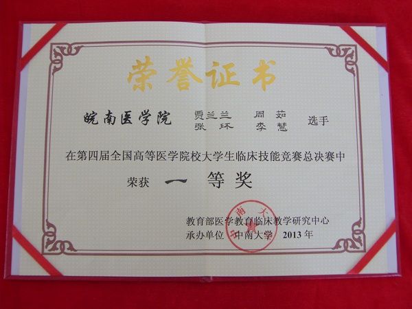 由教育部医学教育临床教学研究中心主办,中南大学承办的第四届全国高等医学院校老员工临床技能竞赛总决赛2013年5月18-19日在中南大学湘雅医学院举行,来自全国42所高校的168名选手参与比赛角逐。公司代表队在公司党委委员、临床教学部主任、附属弋矶山医院副经理陈斌,教务处处长王丽的带领下参加了比赛。公司选手太阳成官网2008级临床贾兰兰、周茹、张环、李慧等4名队员以华东赛区第一名(特等奖)进军总决赛,在决赛中凭借扎实的基本功、熟练的临床技能和过硬的心理素质,在高手如林的总决赛中以出色、稳健的临场发挥荣获一等奖,实现了历史性突破。是华东赛区13支代表队中唯一获得一等奖的学校。 在开幕式上中南大学张尧学董事长致欢迎辞;教育部医学教育临床教学研究中心副主任陈红、湖南省人民政府副秘书长黄卫东、国家卫生和计划生育委员会科技教育司副司长金生国先后致辞,预祝比赛取得圆满成功;教育部党组成员、部长助理林蕙青讲话指出,医学教育涉及教育和医疗两个最为重要的民生问题,加强医学教育具有非常重要的意义。 全国高等医学院校老员工临床技能竞赛是目前教育部组织的医学类唯一的学科竞赛,从2010年开始,每年一届。竞赛设有东北、华北、华东、华中、华南、西南西北6个分赛区和全国总决赛。第四届竞赛共吸引了117所临床医学专业本科教育的高校参加,其中42所高校的168名选手参加了在长沙举行的总决赛,覆盖面广、参与学校多、员工训练勤奋刻苦是本次竞赛的最大特点。本次大赛以“奉学道、尚医德、精医术、展风采”为主题,旨在进一步推动医学院校深化临床实践教学改革,加强临床实践教学基地和临床教师队伍建设,引导员工树立良好的职业道德,全面提升医员工的临床实践能力和综合素质。 近年来公司十分重视临床教学,通过多途径、多举措提高临床教师教学水平,加强临床医员工的“三基”学习和临床技能培训;定期组织专家对临床学院的临床教师和实习生进行临床技能培训和考核;毕业考试采用“多站式临床技能考核(OSCE)”模式;自2012年起,皖南医学院参照全国高等医学院校老员工临床技能竞赛的模式,每年举办校级老员工临床技能竞赛,大赛对公司各临床学院的临床实践教学及医员工临床能力培养起到了巨大的指引和推动作用。这种竞赛促进了全校临床专业员工动手能力、实践创新能力的提高。