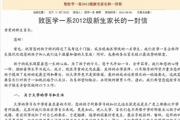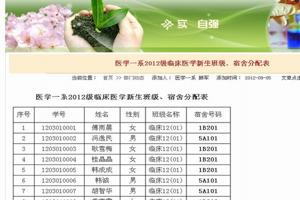 金秋九月,皖医大家庭即将迎来新成员。为做好迎新报到工作,医学一系全体师生全力以赴,用最真诚的服务,最精心的准备,来热情迎接即将加入医学一系临床医学专业大家庭的同学们。 自8月26日以来,系党总支副书记韩军和王金权同志多次组织召开新生年级辅导员会议,部署迎新工作,要求大家积极投入,做好各项准备工作。9月5日上午,召开全系教职工会议,传达落实学校迎新工作协调会会议精神,落实具体人员安排,明确工作内容,强调全系教职工要高度重视迎新工作,本着“以生为本”的工作理念,强化服务意识与责任意识,做到热情接待,周到服务,保证迎新工作的有序开展。 经过全系师生的努力,特别是新生年级辅导员的辛勤付出,年级办公室、教室内、宿舍里、食堂边、绿化园中,校园内到处洋溢中喜庆的气氛;宿舍安排、迎新服务台、报到处、报到程序安排等各项工作有条不紊地开展。为使新生及家长感受到家的温暖,医学一系早早就将《医学一系2012级临床医学新生班级、宿舍分配表》、《致医学一系2012级新生家长一封信》、《致医学一系2012级新生一封信》挂在了系部网页上,给新生顺利报到提供了便利。截止目前,医学一系迎新各项准备工作均已到位,将为新生提供热情周到的服务。