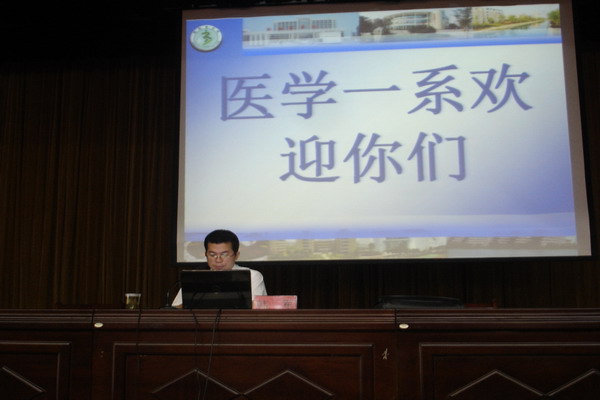 9月14日上午,医学一系在南校区老员工活动中心举行了2012级新生入学教育典礼活动,拉开了新生入学教育的帷幕。典礼活动由系员工工作秘书吴金庭主持,系党总支副书记韩军、王金权,系副主任蒋韶明、2012级辅导员及全体新生参加了活动。 会上,韩军首先代表全系师生向2012级全体新生致欢迎词,对他们的到来表示热烈的欢迎,并详细介绍了学校的地理环境和医学一系的发展简史,指出医学一系是一个团结协作、奋发向上的大家庭,具有光荣的优良传统,希望同学们继续发扬前辈的精神,秉承“精医 尚德 求实 自强”的校训,奋发学习,立志成为技术高超、医德高尚的医务工作者。