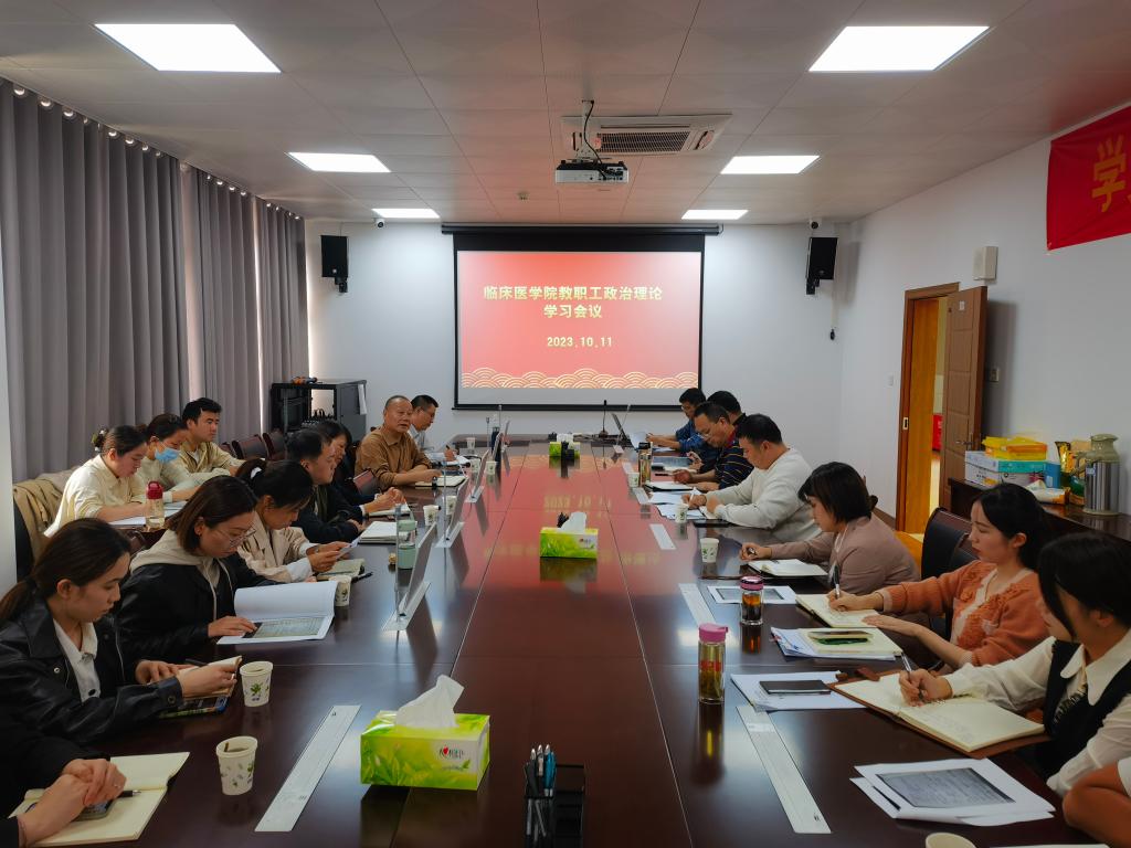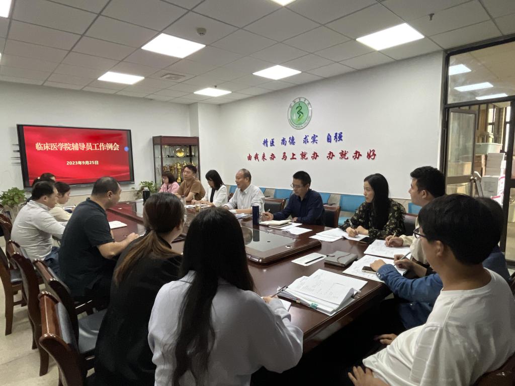 履职尽责谋发展。10月11日,傅万山组织召开全院教职工政治理论学习会议,传达了校二级单位党政负责人工作例会精神。他强调,目前学校正处在更名大学和博士学位授予单位立项建设的重要时期,全体教职工要积极思考自身在学校和学院事业发展中的定位,将个人与集体的发展需要相结合,努力提升“贡献度”;要履职尽责抓落实,紧密围绕学院中心任务和日常工作,在国家级项目申报、人才培养方案修订、国家级实验实训中心创建、老员工医学技术竞赛等方面贡献智慧和力量,促进学院各项工作高质量发展。
