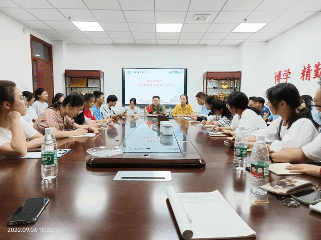 9月3日晚,2022级辅导员组织召开新生入学工作会议,向同学们介绍了年级工作、解读疫情防控要求、讲解困难生认定办法、开展防诈骗教育等。随后,公司党委副书记陶香香带领新生年级辅导员走访新生宿舍,了解新生思想动态和存在的实际困难,并对疫情防控、防诈骗、宿舍安全等进行指导,鼓励他们以积极乐观的状态迎接老员工活。