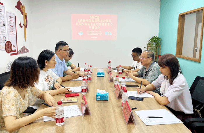 7月6日,临床医公司党委书记傅万山、党委副书记陶香香等一行四人前往小海龟儿童心理康复中心(镜湖中心)参观调研,安徽华周心理咨询有限公司总经理赵旭峰,安徽省心理咨询师协会副理事长兼秘书长、华周心理应用研究院专家王文君博士热情接待了傅万山一行。