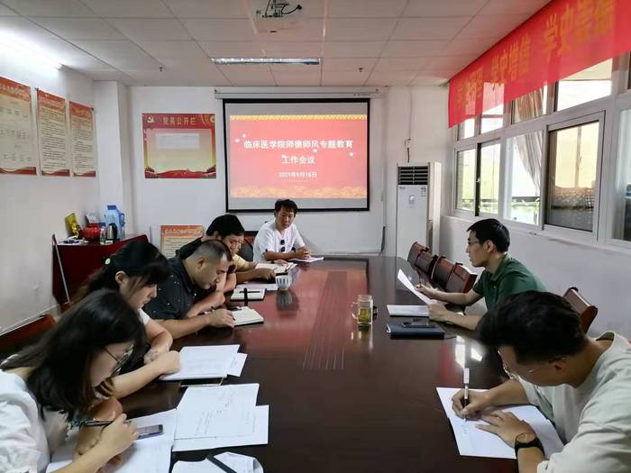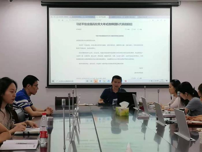 9月25日,学院全体教职工在4号实验楼5楼会议室召开专题学习会。会上,公司党委委员柴智明带领大家共同学习了习近平给全国高校黄大年式教师团队重要代表的回信、《新时代高校教师职业行为十项行为准则》、《皖南医学院关于在师德专题教育中开展师德师风建设问题专项整治工作方案》、《皖南医学院关于师德师风负面清单和失范行为处理暂行办法》;通报了教育部师德警示教育违反高校教师职业行为十项准则的典型案例;共同观看了讲述黄大年事迹的纪录片《难忘初心》。