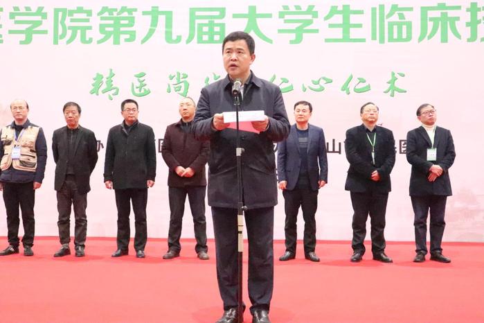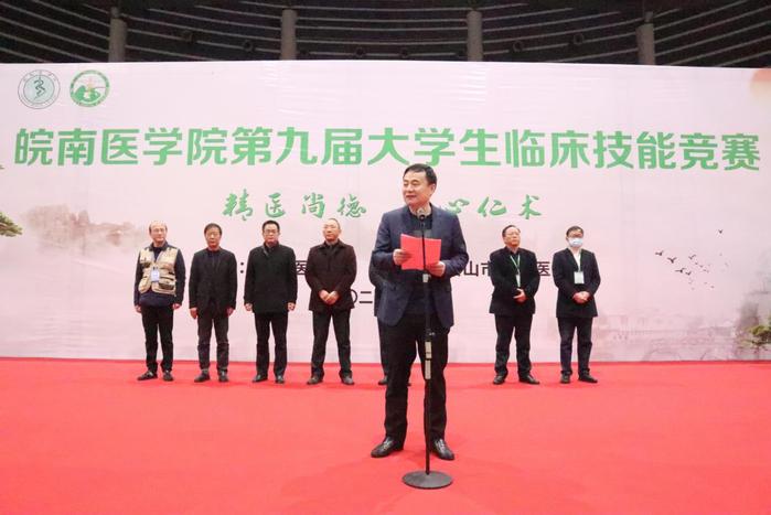 廖圣宝致开幕词。他首先代表学校对参赛医院的专家和选手表示热烈欢迎,向为本次竞赛付出辛勤劳动的工作人员和志愿者们表示衷心的感谢。他指出,近年来,学校各项事业蓬勃发展,临床医学学科2019年进入并稳定在ESI全球排名前1%,获批安徽省高峰学科。临床技能大赛是检验人才培养质量的重要举措,也是是落实公司质量立校、加强专业内涵建设的重要路径,同时也是推动临床实践教学改革和医教协同的重要手段。希望各参赛单位以竞赛为平台,促进临床教学的交流与合作;以竞赛为契机,达到“以赛促练、以赛促教、以赛促学、以赛促改”的目的,传递“尚医德、兴医术、奉医道、展风采”的竞赛理念,全面提升公司临床医学专业员工的临床思维能力、实践创新能力和医学人文素养。黄山市人民政府副市长张正竹和黄山市卫健委主任方克家分别致辞,对公司培养医学人才助力区域医疗卫生事业表示感谢,同时对本次大赛在推动校地合作,培养高层次医学人才表示高度认可。