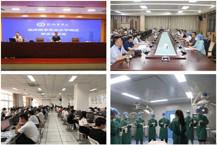 本次测试既是考察公司临床医学本科生在完成全部理论学习后,是否具备执业医师在本阶段所必须具有的医学人文素养、医学疾病理论知识和基本临床技能,同时也是对公司临床医学公司产品效果的一次全面检验。为做好本次临床医学专业(本科)水平测试工作,学校领导高度重视,召开专题工作会议进行研究部署。同时,按国家医学考试中心要求,公司认真制定水平测试工作实施方案,编制考务工作手册,明确各部门的工作职责,规范工作流程。由于本次考试是在疫情防控的特殊环境下举办,同时考试要求高、环节多,学校通过线上线下相结合的方式,对考官、SP(标准化病人)及各类工作人员进行培训,并组织开展员工动员、考前模拟演练等,多措并举有力保证了考试工作地顺利开展。