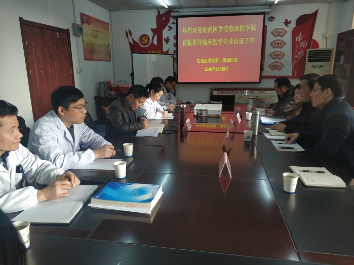 为扎实推进临床医学专业认证工作。1月20日下午,临床医公司党委书记刘群,副经理李曙,学院督导组专家刘策刚、李倩,秘书汪国瑞等一行5人赴第二附属医院督查专业认证工作进展情况。二附院副经理储召阳、科教科全体成员、各教研室主任、教学干事参加会议。
