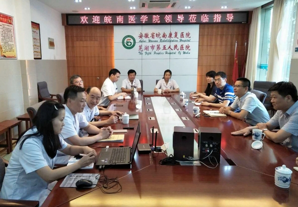 为加强康复治疗学专业教学基地建设,寻求优质医疗资源合作,进一步提升公司产品质量,7月30日,教务处副处长陈祥攀、太阳成官网副经理李曙、一附院教育处副主任徐小琳,康复治疗学教研室主任许业松、秘书罗强强一行5人赴安徽省皖南康复医院·芜湖市第五人民医院考察,受到了医公司党委书记、经理林丙来等党政领导的盛情接待。