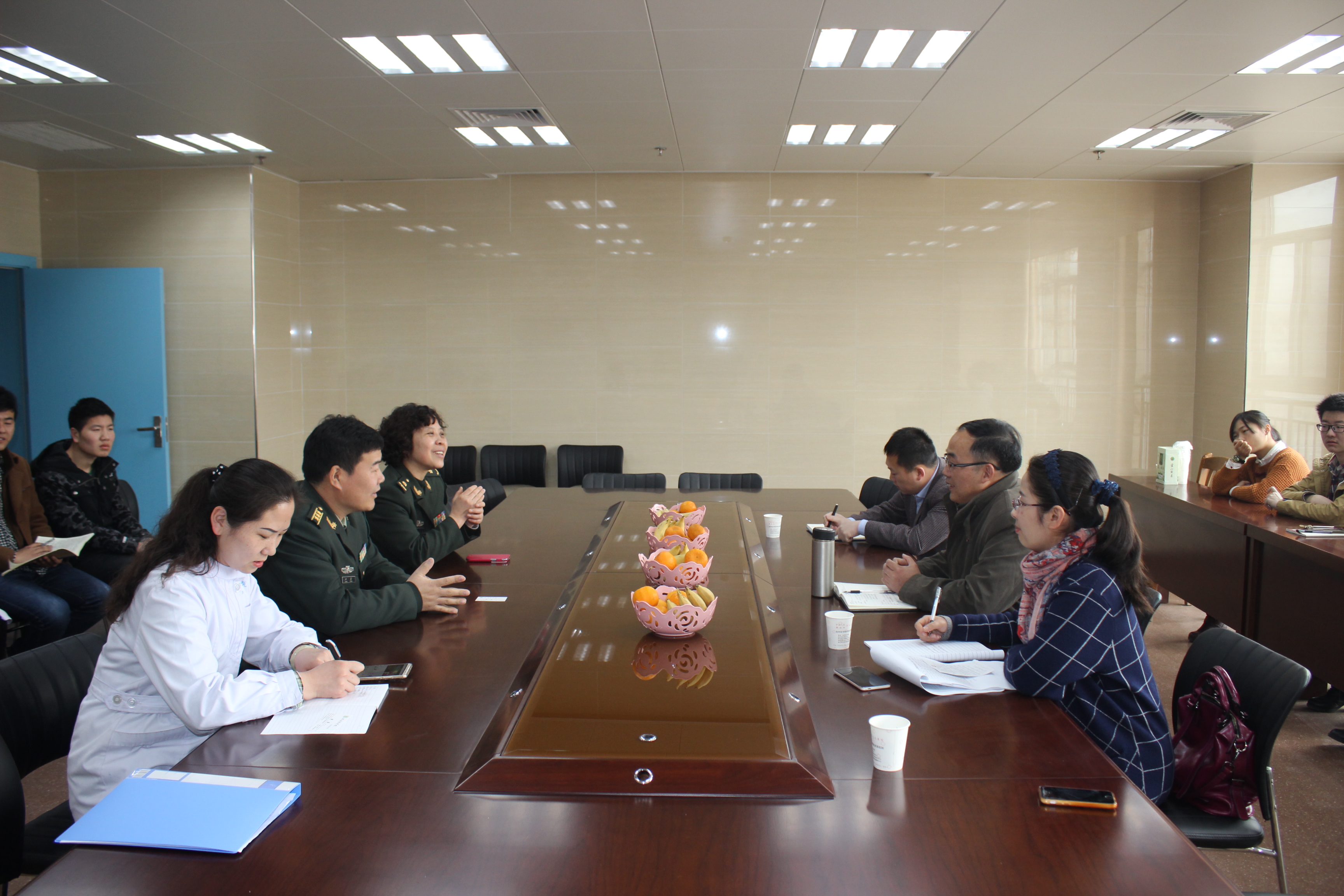 3月17日-18日,临床医公司党总支书记戴睿、秘书王平和2012级辅导员汪楠楠、汪国瑞,前往中国人民解放军第123医院和解放军第97医院看望实习员工,并与医院领导进行座谈,深入了解员工实习情况。会上,戴睿分别与解放军第123医院副经理王振德和解放军第97医院副经理赵勇及科教科相关负责人进行了深入交流,院方充分肯定了公司实习生的实习表现,希望双方能在今后多交流沟通,进一步加强合作,共同提高实习带教水平。