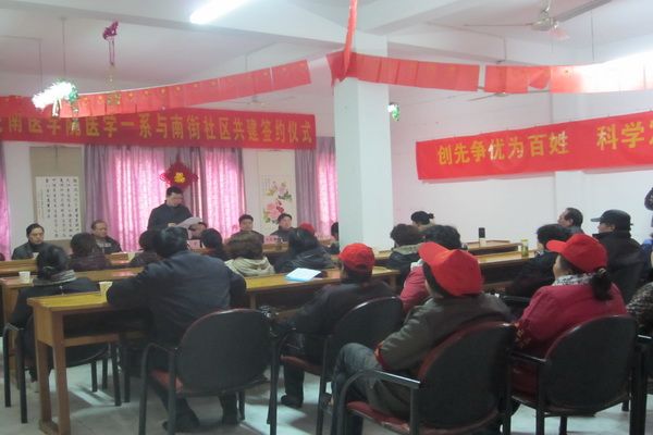 南街社区党委书记鲍小龙首先首先代表社区感谢学校对社区发展的支持,指出双方在前期共建活动的基础上,取得了显著成效,员工得到了锻炼,群众得到了实惠,社区实现了发展。共建协议的签订,将使共建活动更加规范、更有特色,将为双方的合作提供新的契机。韩军副书记随后代表医学一系致辞,他简要介绍了医学一系的发展历程和在培养优秀医学工作者方面的突出成绩,并指出社会实践活动是促进员工全面发展的有效途径,学校与社区的共建为员工开展活动、了解社会提供了舞台,希望双方继续本着“合作促发展,共谋创特色”的工作理念,优势互补、资源共享。希望广大团员青年积极投身社会实践,在实践中锻炼能力,在服务社会中增长才干;希望街道、社区一如既往地关心、支持员工成长,引导广大团员及青年员工关心社会、服务社会,培养员工理论结合实践的能力。
