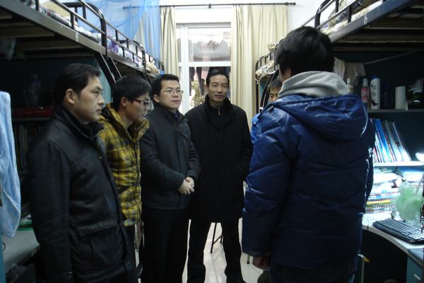 2月27日下午,医学一系党政领导在辅导员陪同下深入员工宿舍看望同学,了解员工返校及生活等情况。